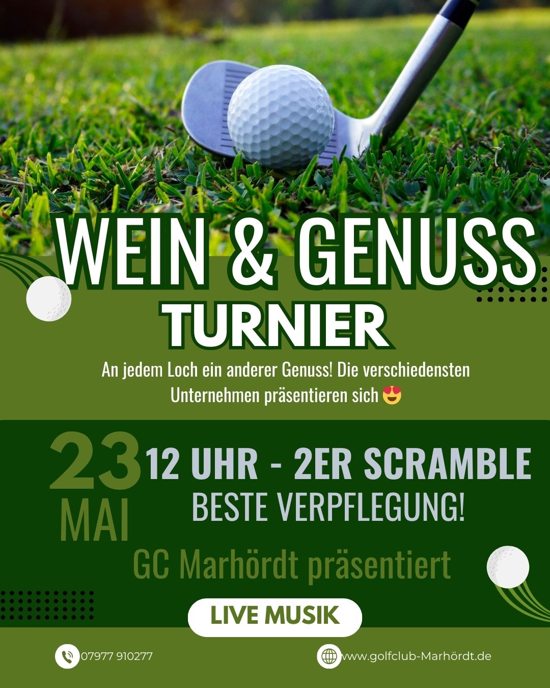 Dazu ein lockeres 2er Scramble Turnier und anschließen Live Musik und gute Stimmung.